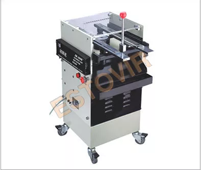 - The fast turning tungsten caribide blade cuts the wire leads while the PCB are fed on the machine track manually.